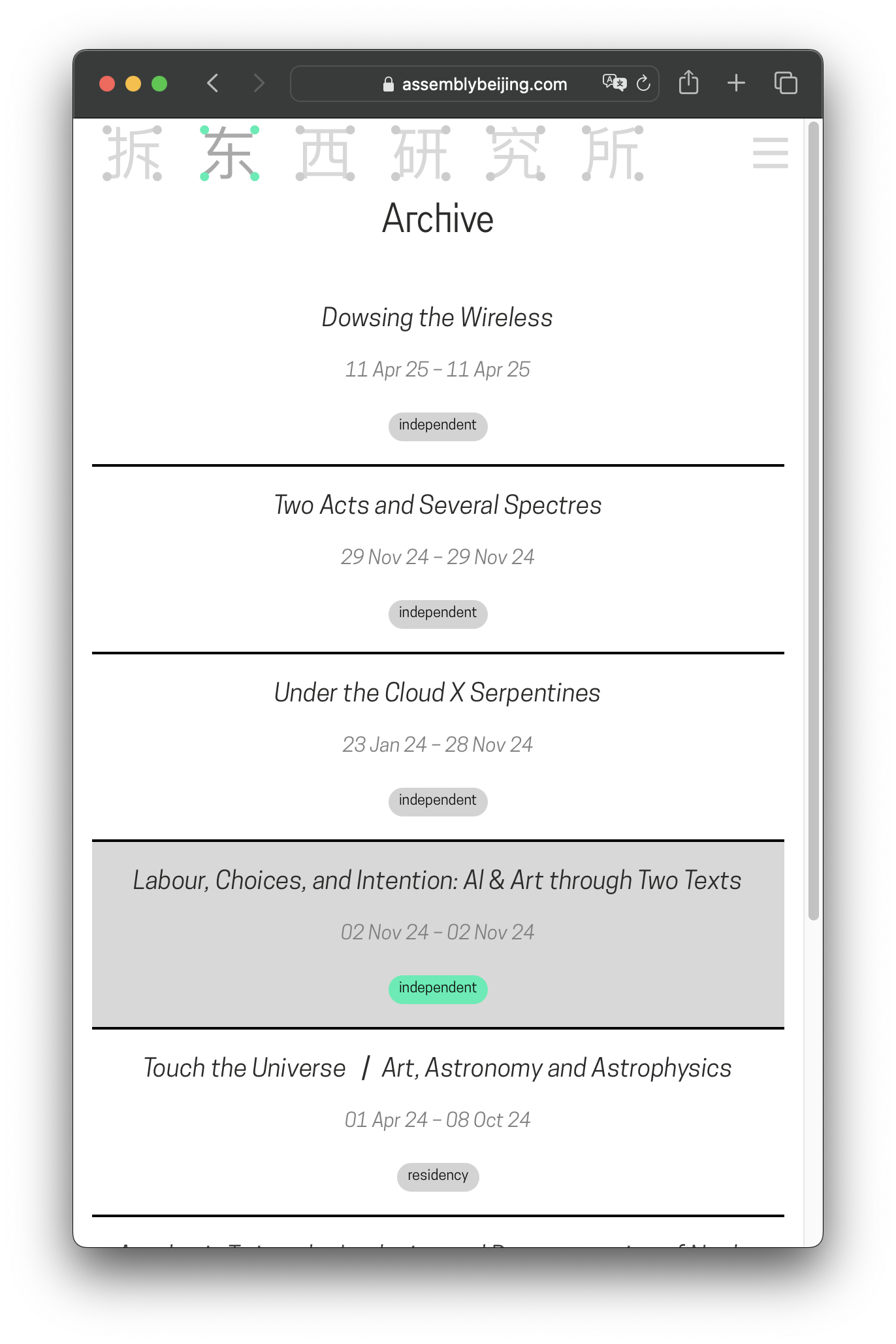 Web design & development for Beijing-based cultural organisation Assembly. Web design in collaboration with Sixin Chen. Assembly identity is designed by Sixin Chen & Philipp Hesselberger. (2024)Open ↗