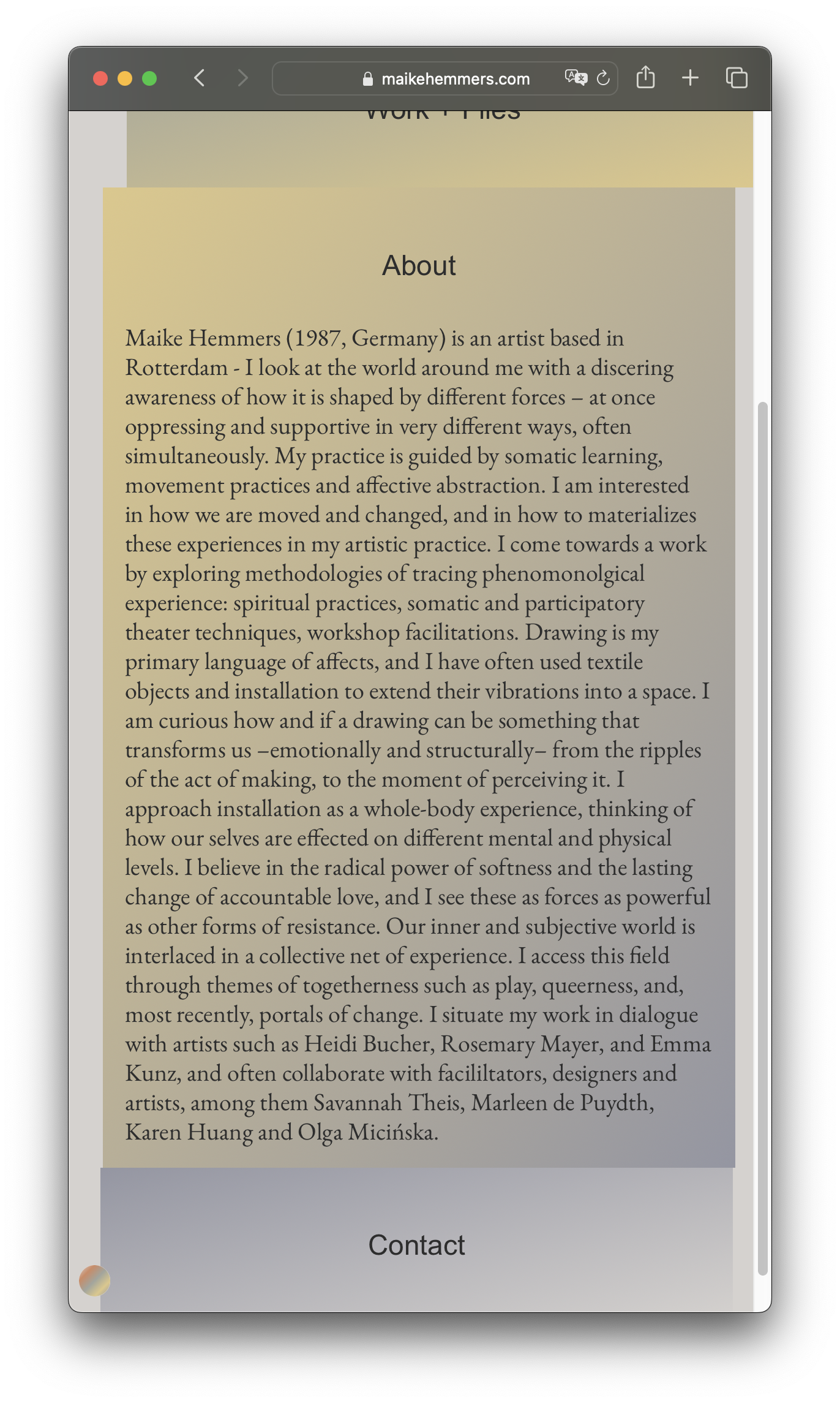 Web design & development for Rotterdam-based artists Maike Hemmers. Open ↗
