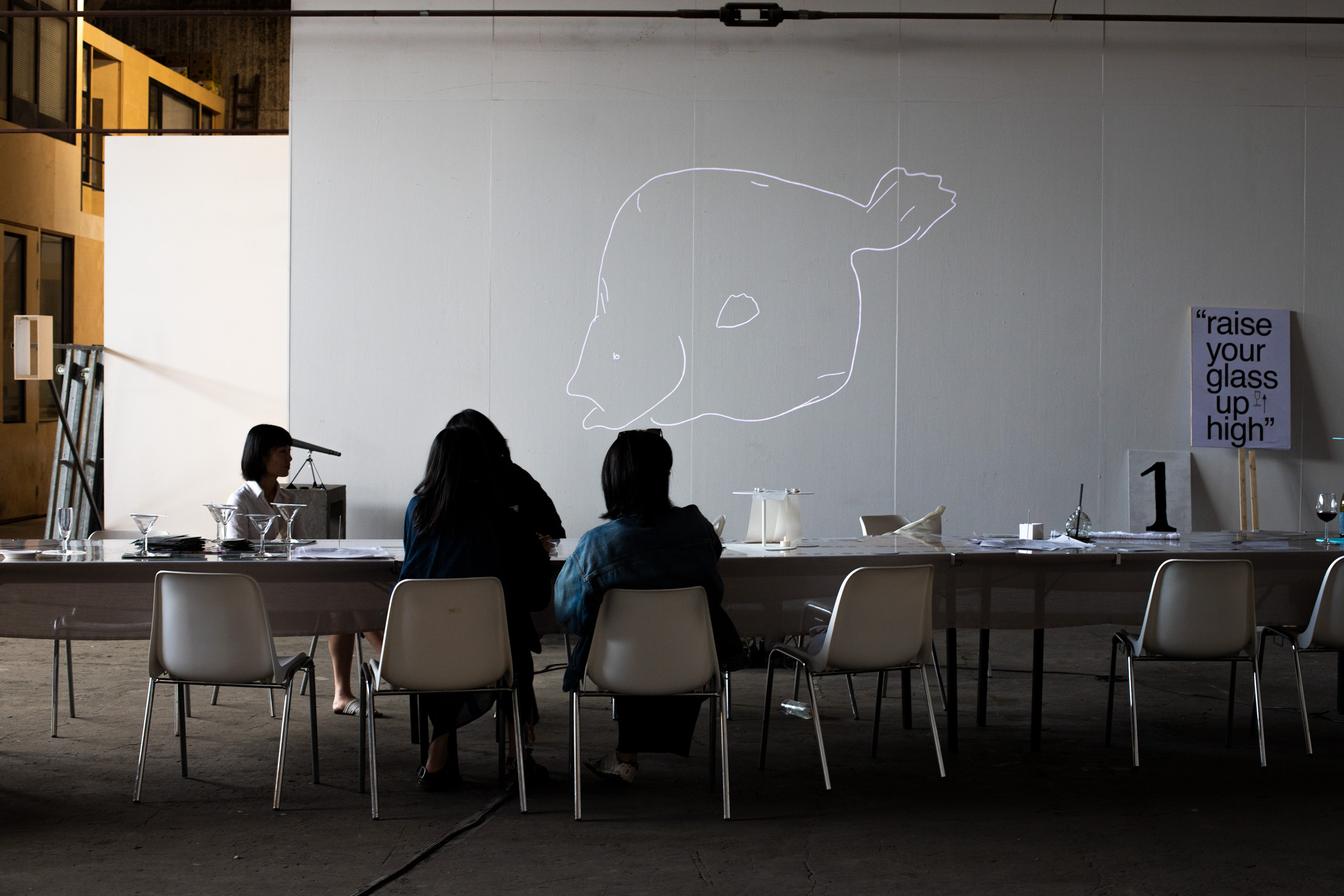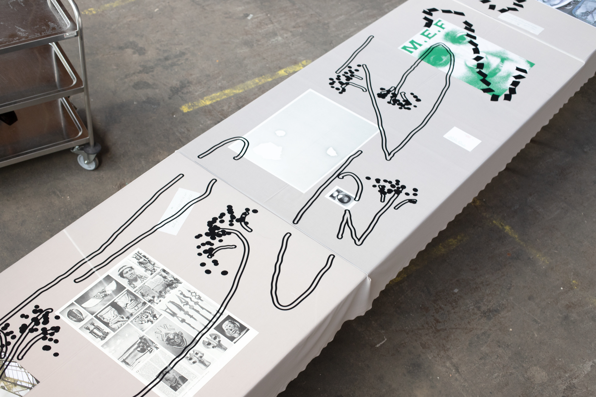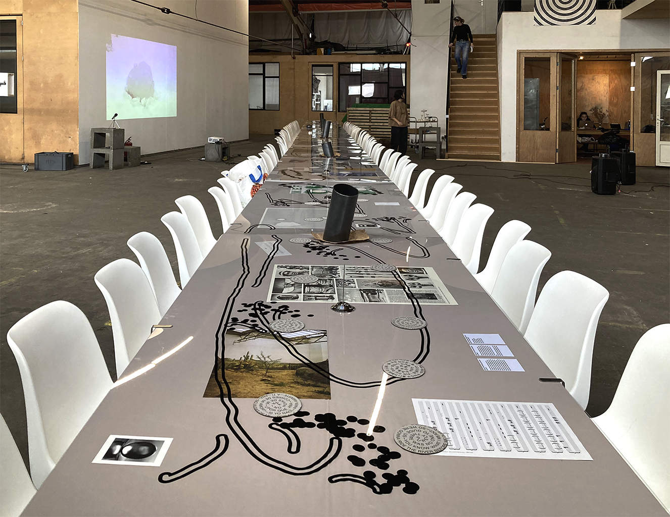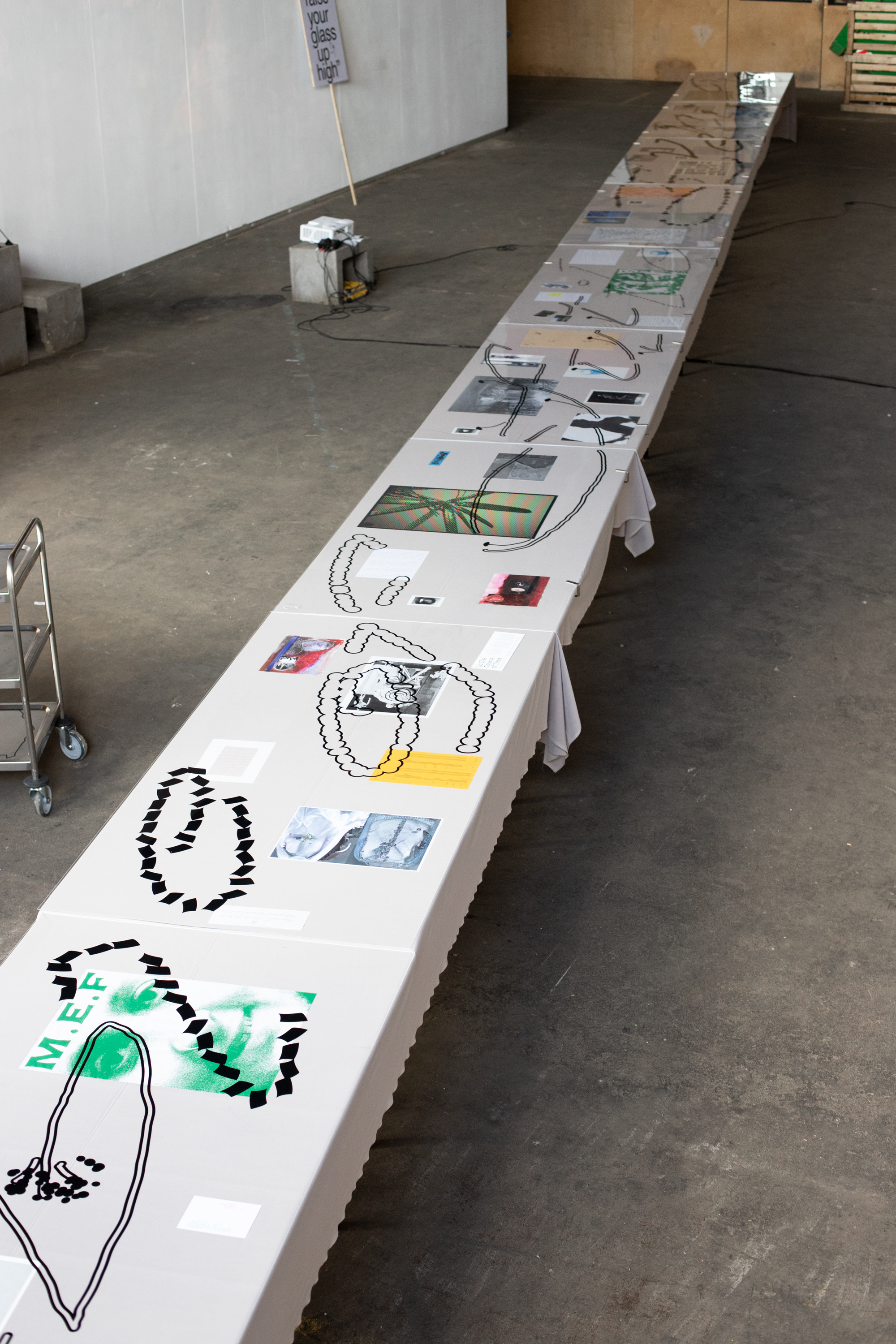 Lettering/set design for the Table of Futile Evenings at ISO Amsterdam, an exhibition/tasting event for 75 guests. The design of the letters was based on the ingredients of the ten edible courses made by participants, from elderflower syrup to funghi and wine. With Kai Udema. 2022